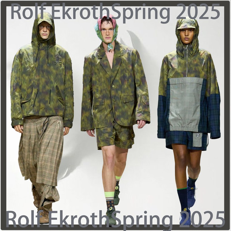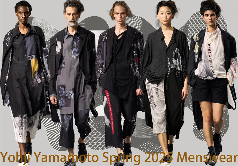 Yohji Yamamoto的2025春夏男装系列,色彩选择体现了一种从复杂到简约的转变,肌理,涂鸦的大量运用让服饰随心休闲,文字