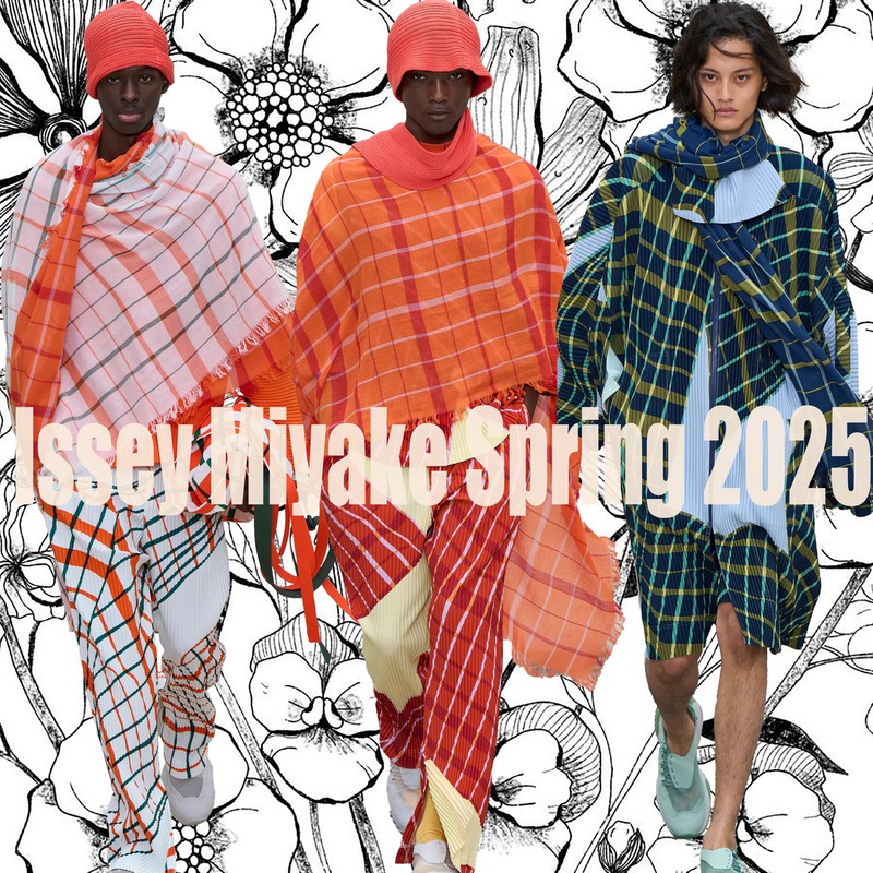 Issey Miyake Spring 2025中明亮配色的格子几何图案,与肌理纹样图案格外亮眼,快来看看这些几何与肌理图案吧