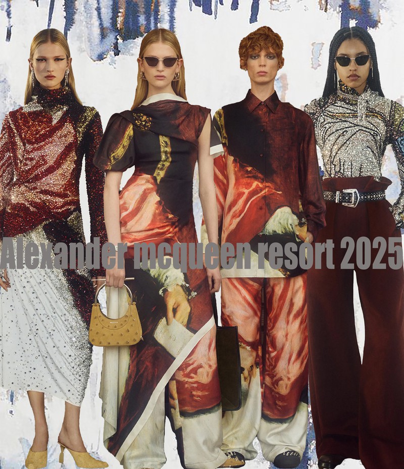 Alexander mcqueen resort 2025中的油画风景人物元素亮眼,快来看看这些油画华亿平台吧