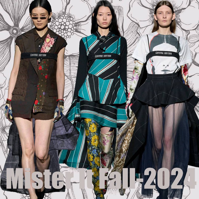 Mister It Fall-2024几何与种类各异的花卉在分割的区块中碰撞,快来看看这些混合拼接的华亿平台吧