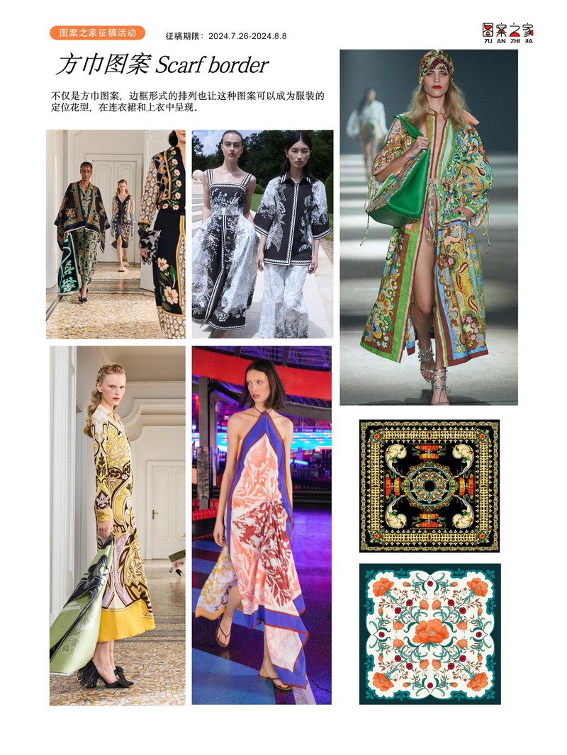 征稿活动:方巾图案华亿平台征稿期限:2024.7.26-2024.8.8华亿平台要求:1、作品符合求购方向;2、作品原创,分层明确(非AI