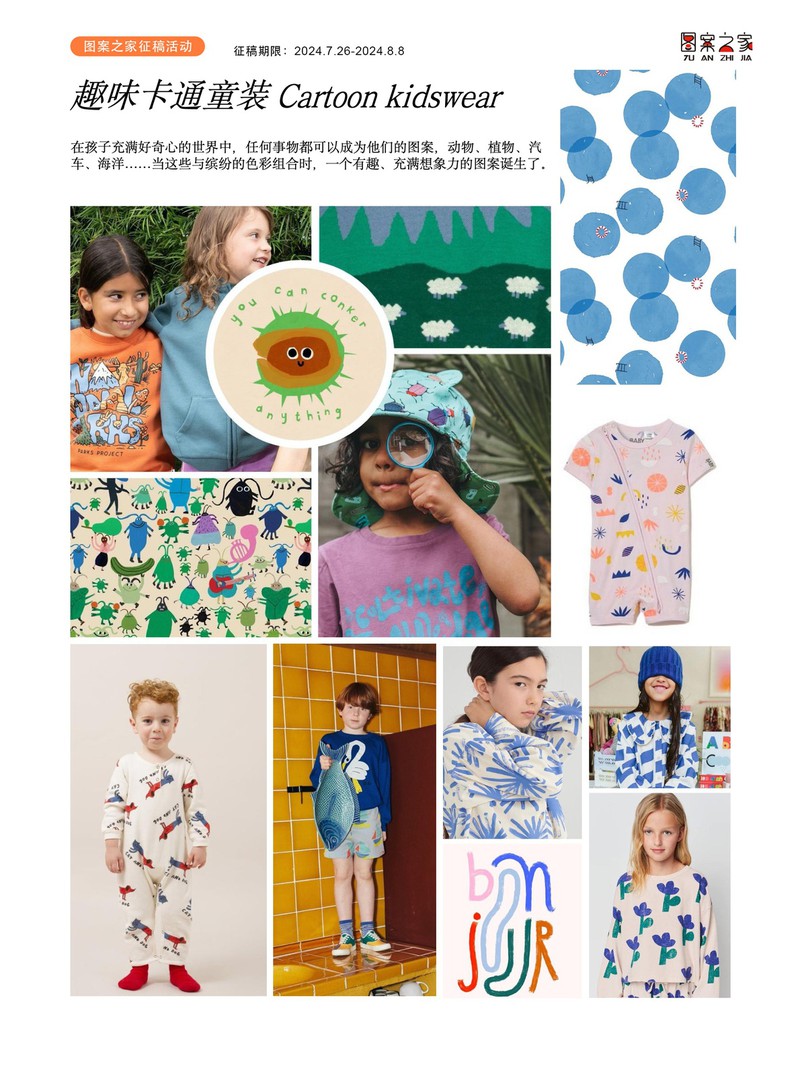 征稿活动:趣味卡通童装华亿平台征稿期限:2024.7.26-2024.8.8华亿平台要求:1、作品符合求购方向;2、作品原创,分层明确(非