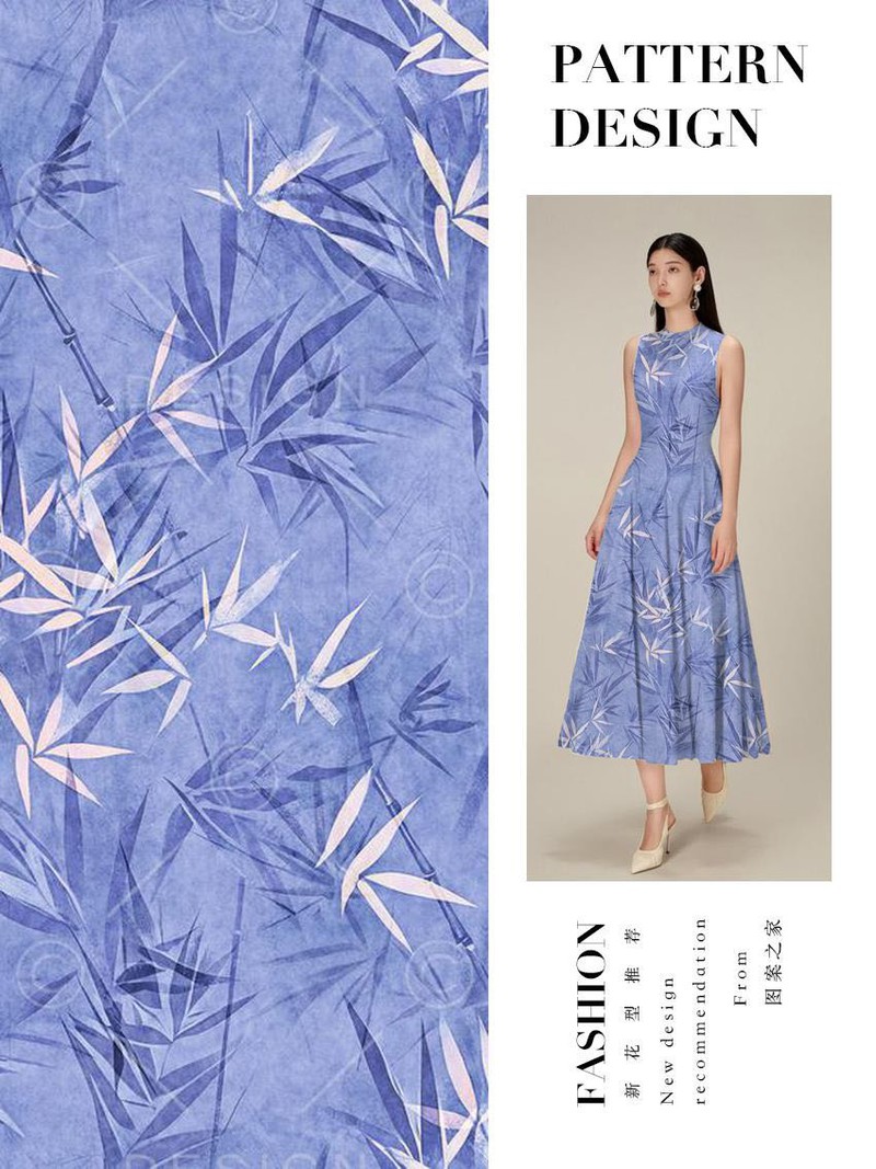 竹叶错落印在香云纱,一片清幽,满是文人雅趣。