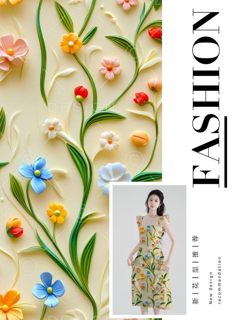 牛仔,永远是时尚界的宠儿,它的底纹就像一块个性的画布,而花卉则是在这画布上肆意挥洒创意的艺术笔触。
