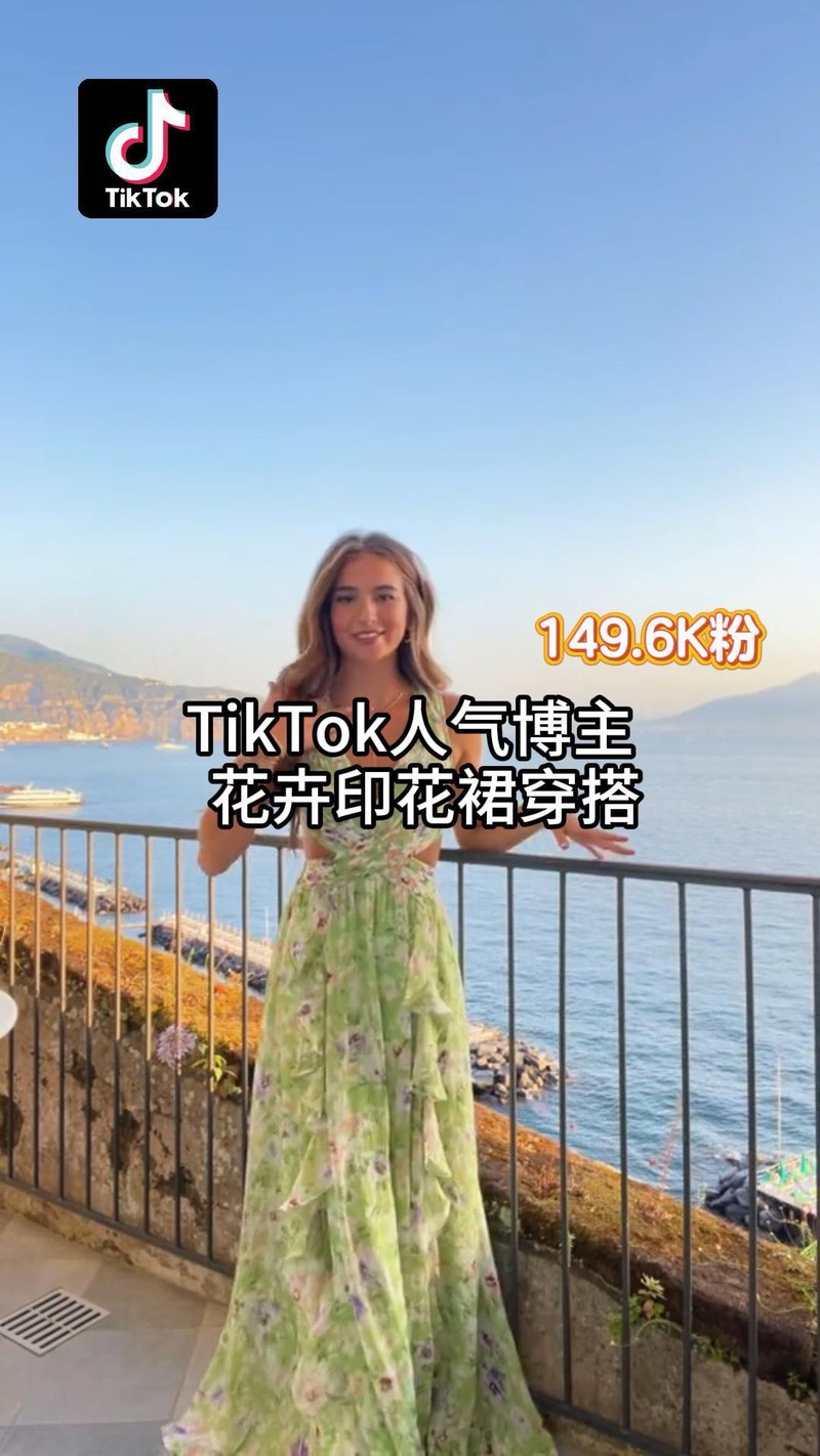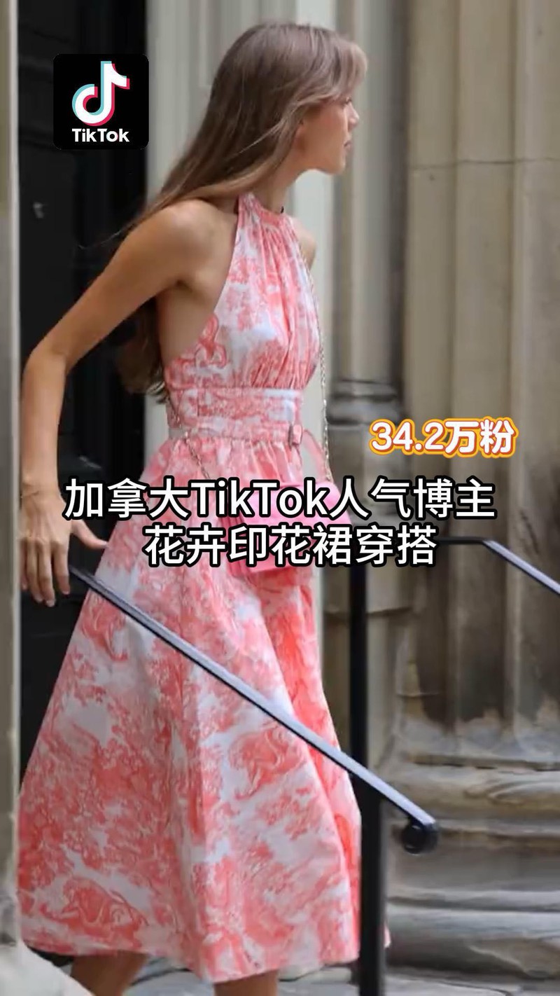 美国Tiktok人气博主 ZARA印花裙穿搭演绎